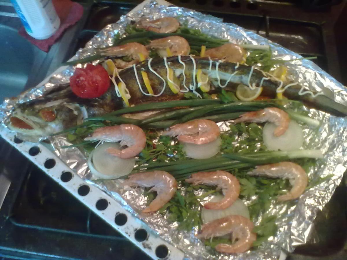 | Скиталец, креветки вижу, а собственно где рыба и какая не соображу. Но задумка хорошая. |