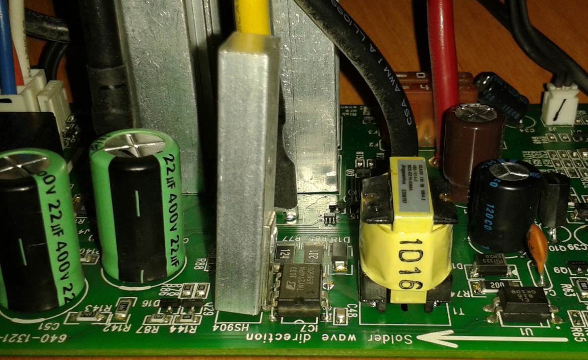 220В - фильтр - самовосстанавливающийся предохранитель 1А - выпрямитель - имп. преобразователь TNY274PN - ИОН 1431C.