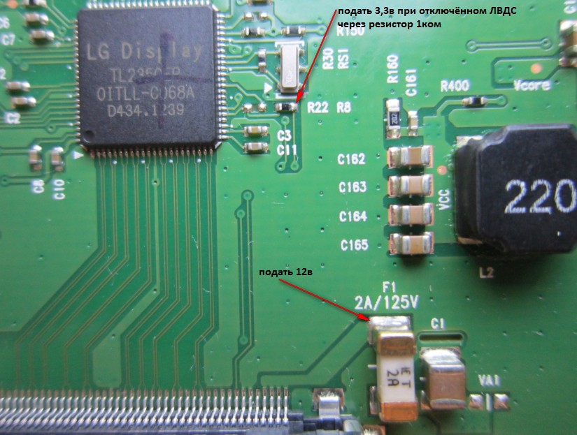 | На правой планке матрицы оказался пробитым C224 и оборваным C222. При чем С224 пробивался только под нагрузкой, при этом кратковременно пропадали напряжения HGH и VDD. После их замены с донора работа матрицы восстановилась. Вход в автоном такой как писал Oleg-44. |