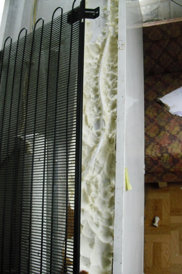 Snaige, модель не смотрел, кажется RF 310. Разорвало задний уплотнитель. Уже отмечали , что трубки лежат на глубине 1 см. Выбираем уплотнитель, задуваем макрофлексом и чтобы не очень сильно разбухало подпираем грузом.