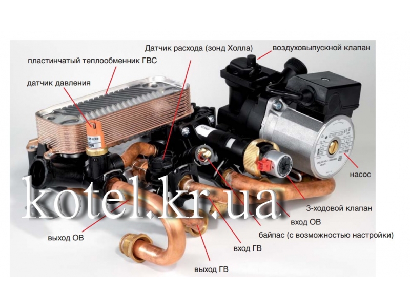 Кондер на насосе менял,3-х ходовой клапан разбирал сразу после покупки котла-в нём был камень на входе обратки-всё почистил и установил назад.Главный теплообменник снимал и чистил.Линия байпас не прогревается при режиме отопления,единственное что заметил-при включении котла с небольшим запозданием прогревается так же трубка после вторичного теплообменника.