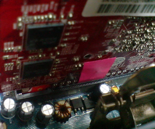 | Да, разъем оборачиваем с двух сторон. Иначе не вставишь. С одной стороны оставляем длинный конец бумажки, чтоб удобнее было пальцем придерживать, когда вставляешь (как на фото), с другой стороны - чтобы выводы на видюхе перекрыты были. |