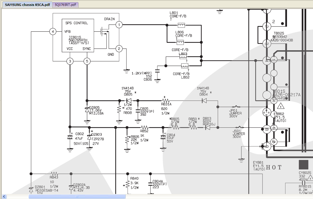 Сегодня менял 5Q0765RT в шасси KSCA - на плате с завода не установлены (но место есть) С804 и R806, а вместо R852, R805 и R850 запаяны перемычки. DZ803 на 27в.
