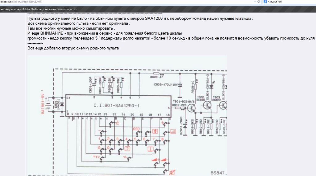 Нашлась схема родного пульта на SAA1250 здесь же на сайте monitor.espec.ws/section23/topic21916.html .