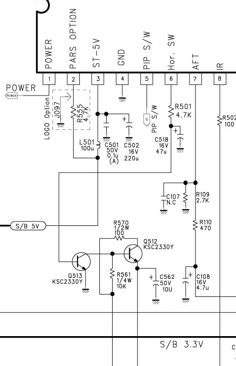 Питание (+45В - должно быть) на ТМС "через" Q513 и Q512 тоже поступает скачком до 10В и падает, на 6pin проца( Hor.SW ) 5В.