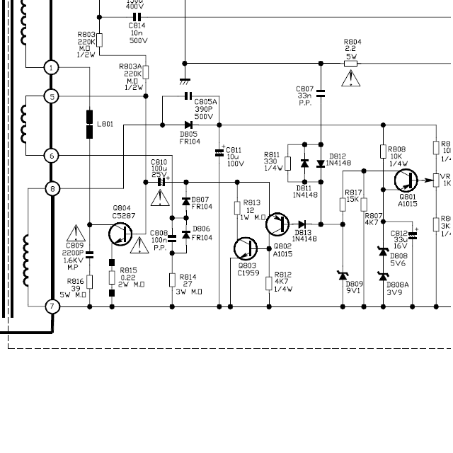 | andrey-k писал: | | ...Нет запуска.На С810 питания нет ,но если откинуть D813-напруга появляется в первой части,после Д805 нет ничего ,но на аноде Д805 около 5в..модуляция присутствует... |