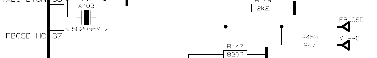 aze1959, ты мою схему видел? даже если глянуть твою схему, что ты указал то!! на 37 вывод проца приходит FB-osd даже если бы R449был оборван или замкнут на корпус то импульса не было бы вообще, и срабатывала бы защита Q603, или я ошибаюсь?