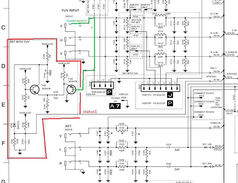 Вобщем переделал телик, YUV работает, единственное смущает вспышка на экране при переключении компонент-композит, не спалит ли это кинескоп или проц? Я правда не ставил кондёры по 22 пикофарад между сигнальными линиями и землёй, они могут влиять на вспышку?