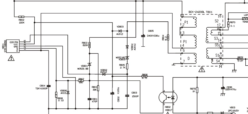 Если нагрузить B+(136в) на лампочку, блок питания работает нормально, а так же можно отключить нагрузку по +5в (после кренки), тоже работает без срывов.