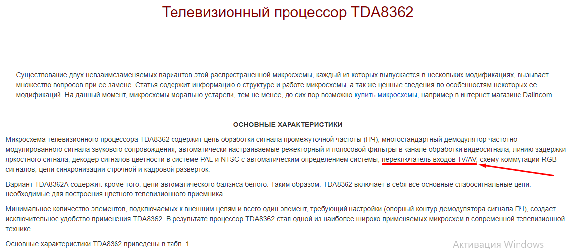 Так смотрел, судя по описанию характеристик МС МС TDA8362B (скрин приложил), то переключатель входов TV/AV находится в ней. Но и МС TEA2014A ,если правильно понимаю, тоже служит для переключения TV/AV.