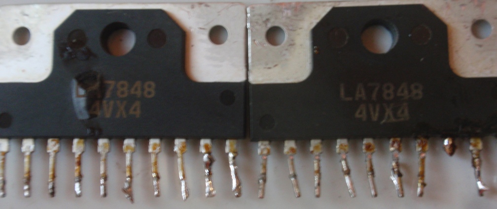 | Yuritsh писал: | Возьми сгоревшую LA7848, у которой остался жив транзистор коррекции, оставь 1, 6, 8, 9, 10 ноги, остальные откуси. Впаяй её на штатное место.