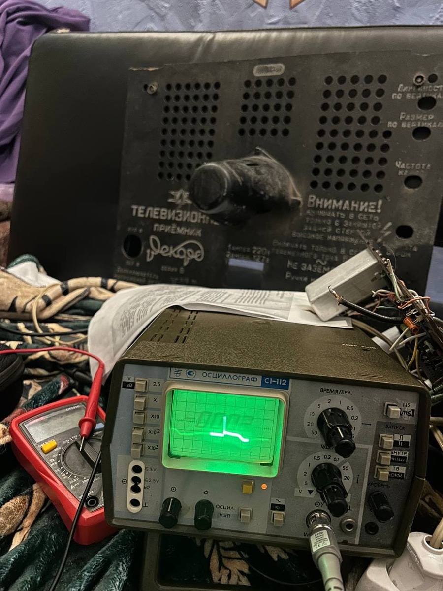 Так же прикладываю фото с самих кадровых катушек ( выход ТВк). там тоже этот пик виден. Понятно что из за него нету изображения но совершенно не понятно от чего он может быть (