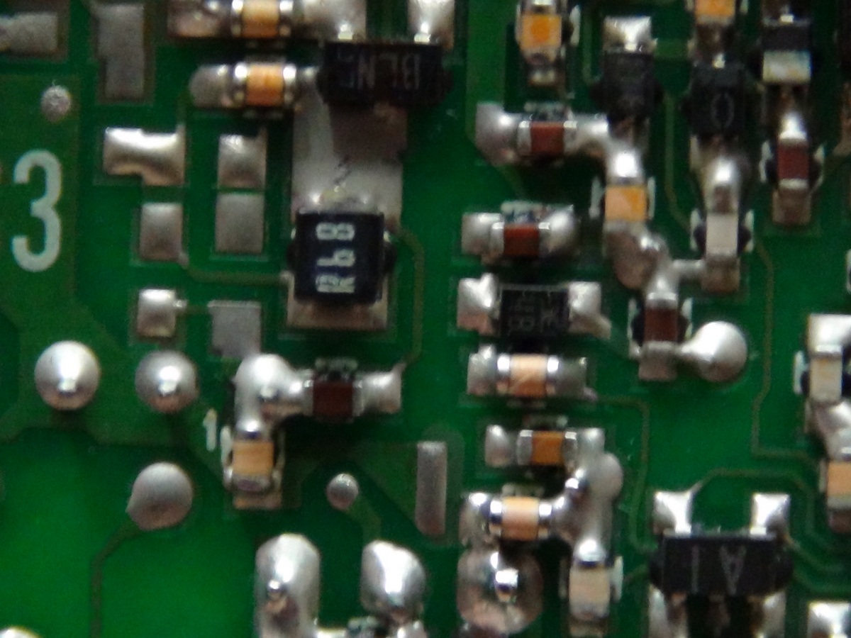 | Сверху вниз - 89 или вq. Не разглядел, прочитал на своих обломках. Что третье понять невозможно, может даже просто метка (анода или катода). В толстом толмуде по активным SMD-компонентам написано что 89 и В9 в таком корпусе нет, а BQ это стабилитрон на 17 вольт. Сомнительно, что бы ему там делать. Попробую поговорить в сервисном центре, может у них где такой блок в разборке валяется. |