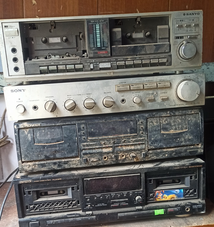 Некто Никто, с колонок взять нечего, от слова совсем. В кассетниках платы с погнившими выводами у деталей. Бобинники тоже все поржавевшие и сгнившие. а платы там в ещё более в плачевном состоянии. Что то единичное выбирать ... Было бы лаком залитое, тогда может и выжило бы что то, а так, увы.