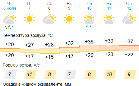 Сегодня тоже так это +36. Но сейчас под вечер тучи какие то пришли, возможно будет дождь-гроза. |
