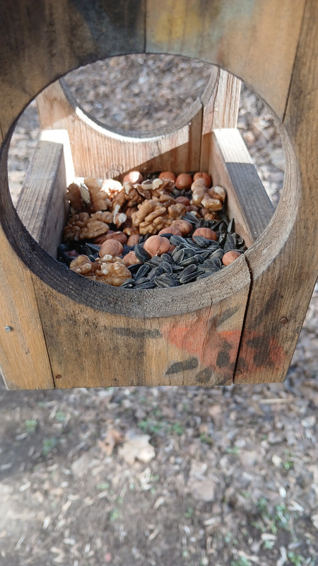 Мешок семок разных для пташек куплен, две кормушки. Лес рядом, снега было иногда. Птицы с леса редко заглядывали. |