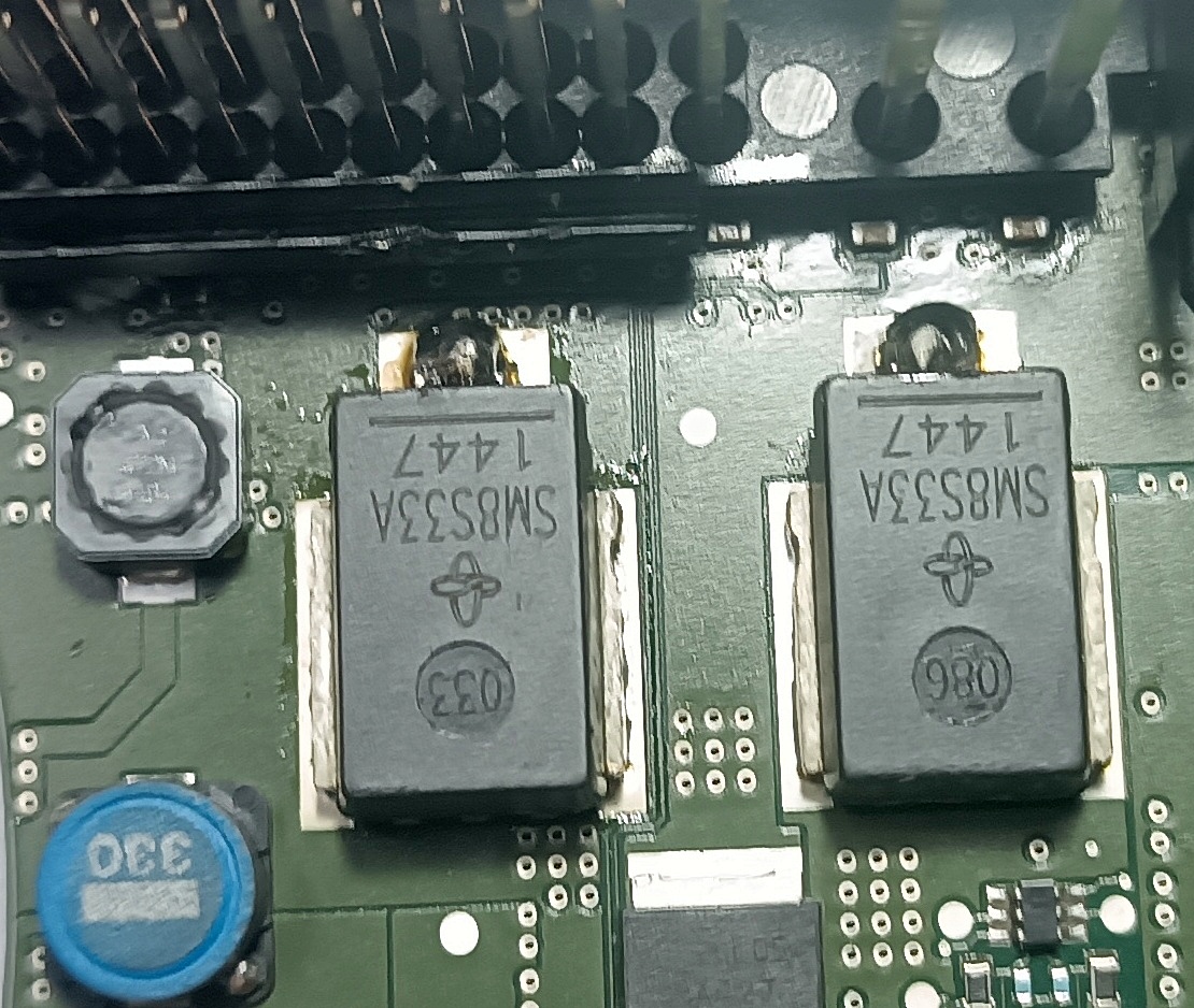 Два супрессора, на 33 вольт. Подал на них питание, 24 вольт, напряжения питания процессора нет!!! Материнка "на распайку" от ноутбука. Крышки кварцев оторванные. Просто валялись.