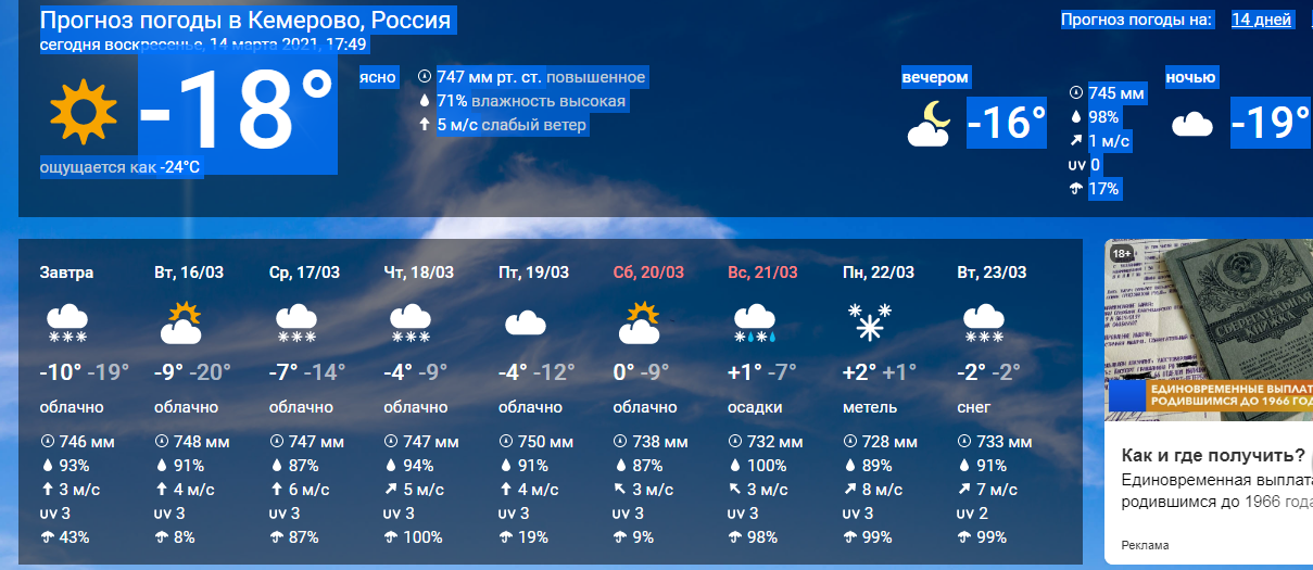На завтра +20 наобещали. Но только на чуть-чуть. К вечеру опять всего +2 будет. |