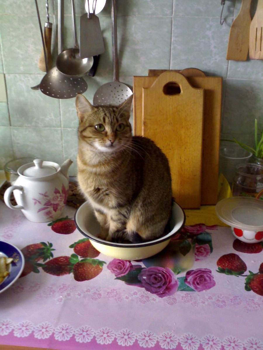 Мимоходом... Недавно чистил свой архив на компе и наткнулся на фото. Как-то щёлкнул по случаю. Кошка не моя, а сестры. Тем не менее - кушать подано!