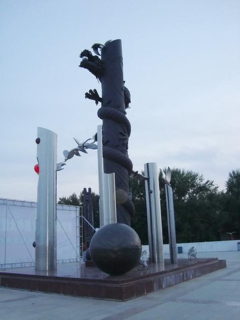 Вдоль Амура красивая набережная. Через каждый квартал - площадь и на ней обязательно чего нибудь стоит. Вот женщина - мать держит на руках ребёнка - ангела.