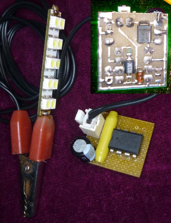 Эт я на работу сделал (в плане на завтра - окуклить светодиодный кластер в прозрачный герметик) - "шахтёрка" инструмент тяжеленный и жутко неудобный, особенно когда в шкафах что-то монтировать приходится и голова-то еле влезает. А крокодил на работе заржавеет вообще мгновенно - надо какой-то пластмассовый зажим придумать.