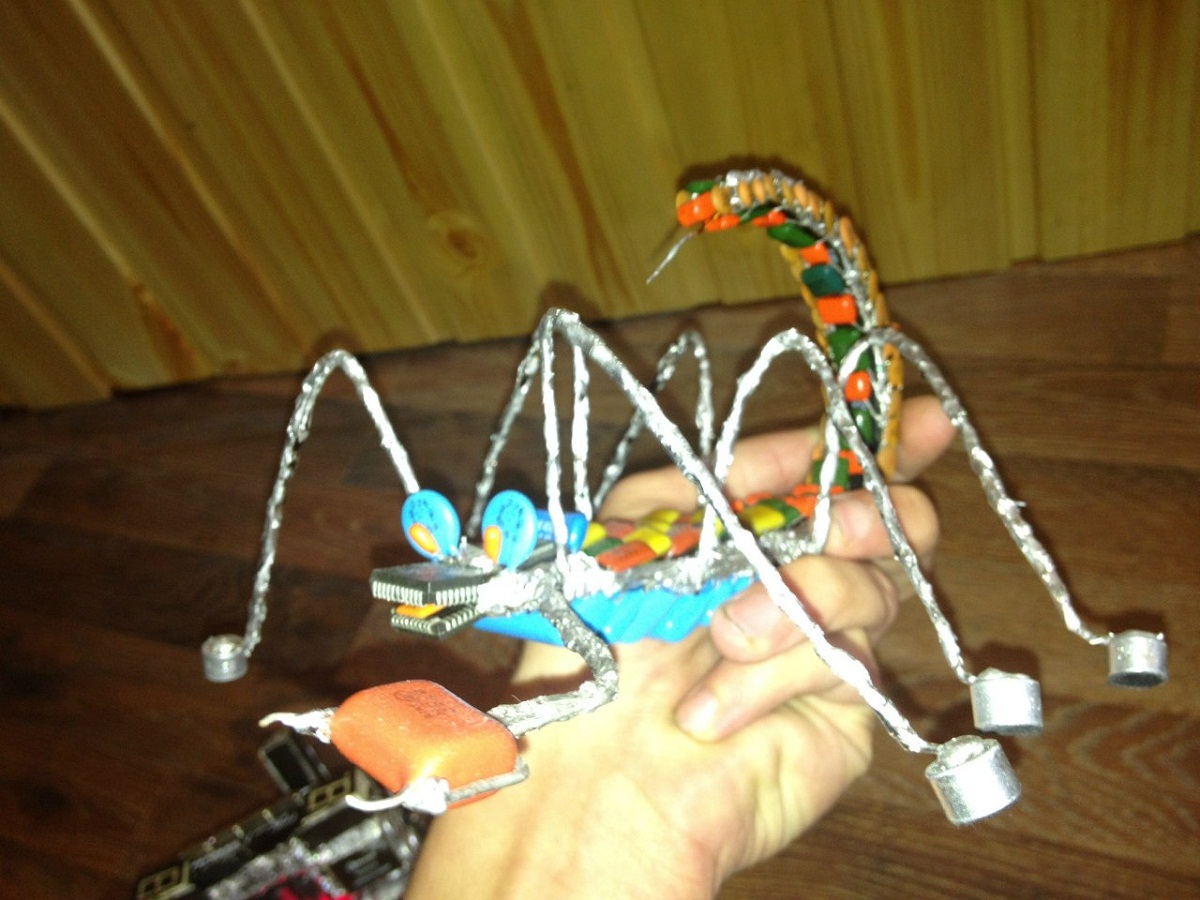 kolyasol, фантазии у тебя хватает! А главное терпения обклеивать горшок с цветами радиодеталями.