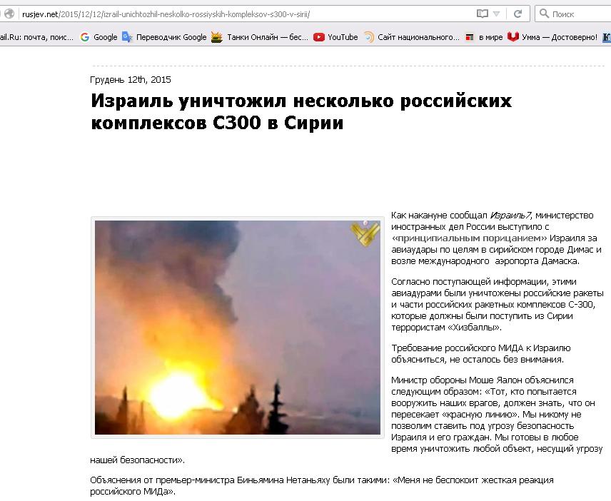 | Nabi писал: | | Израиль уничтожил несколько российских комплексов С300 в Сирии |