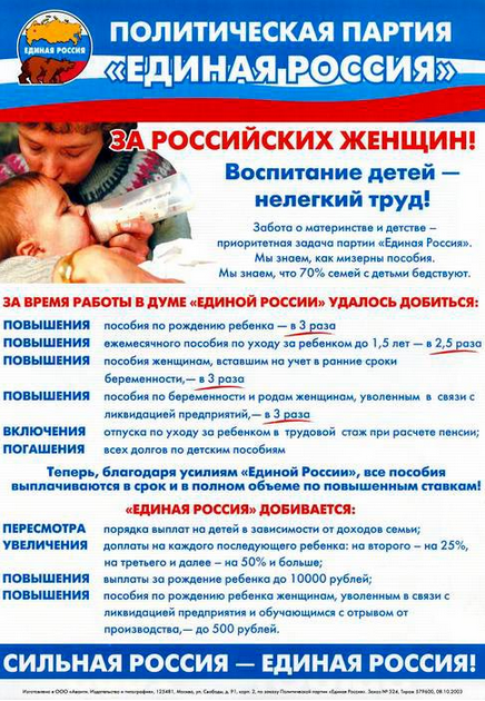Рифат, Рифат,а что не так.До 2002 года и того не было. Материнский капитал выплачивают,пособий при рождении ребёнка-много:20000,10000,+какие-то местные.Помню от 250руб отказался,много справок собирать. Так ведь дают же, Конечно хотелось бы больше.