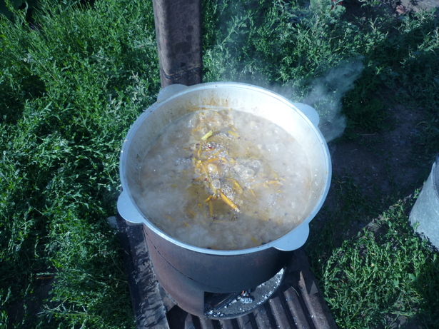 До обеда ездили за ягодами. А к вечеру казан с очагом протестировал.