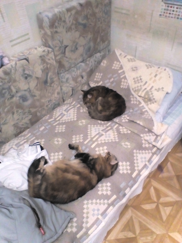 | sashko65, ты опять ничего не понял. Юмор. Коты место заняли...У нас это каждое утро...разве что диван поболее...всем хватает. |
