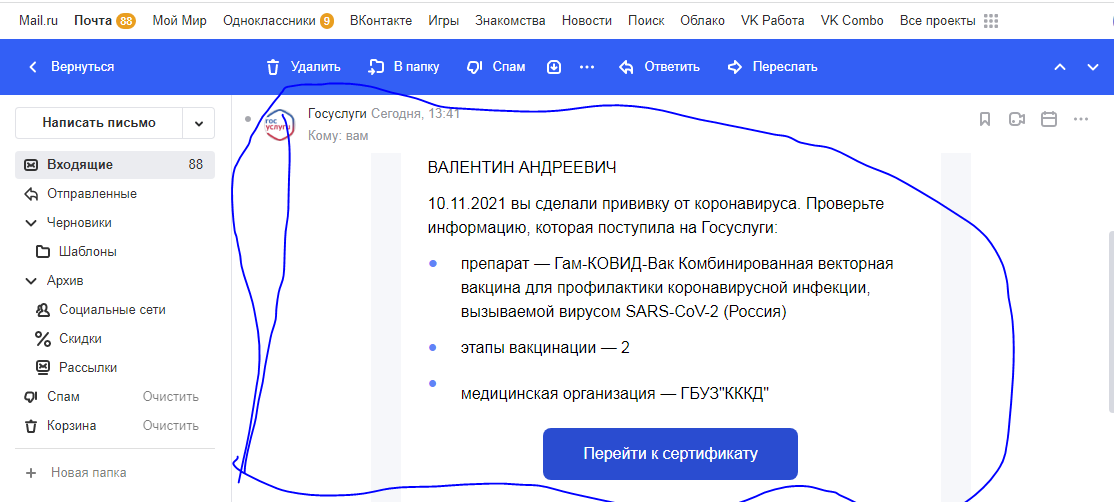 | валентин-сибиряк, 88 непрочитанных сообщений.Э...батенька,вдруг там письмо что предыдущая прививка пожизненная и прививаться больше не надо? |