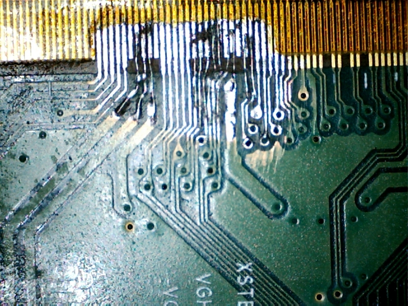 Borek, всё уже промыто! Там пятаки сгнили, половину дорог, половину деталю! И это у всех 4-х шлейфов, а не у одного! На одном шлейфе попала влага и сгнили 2 дороги прям под шлейфом. Переходные пятаки тоже много погнили. Не хочу его никак делать вообще!