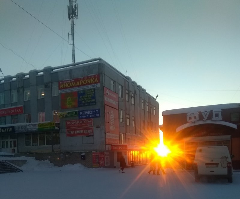 Да, солнце всходит на пару часов, едва касаясь горизонта. |