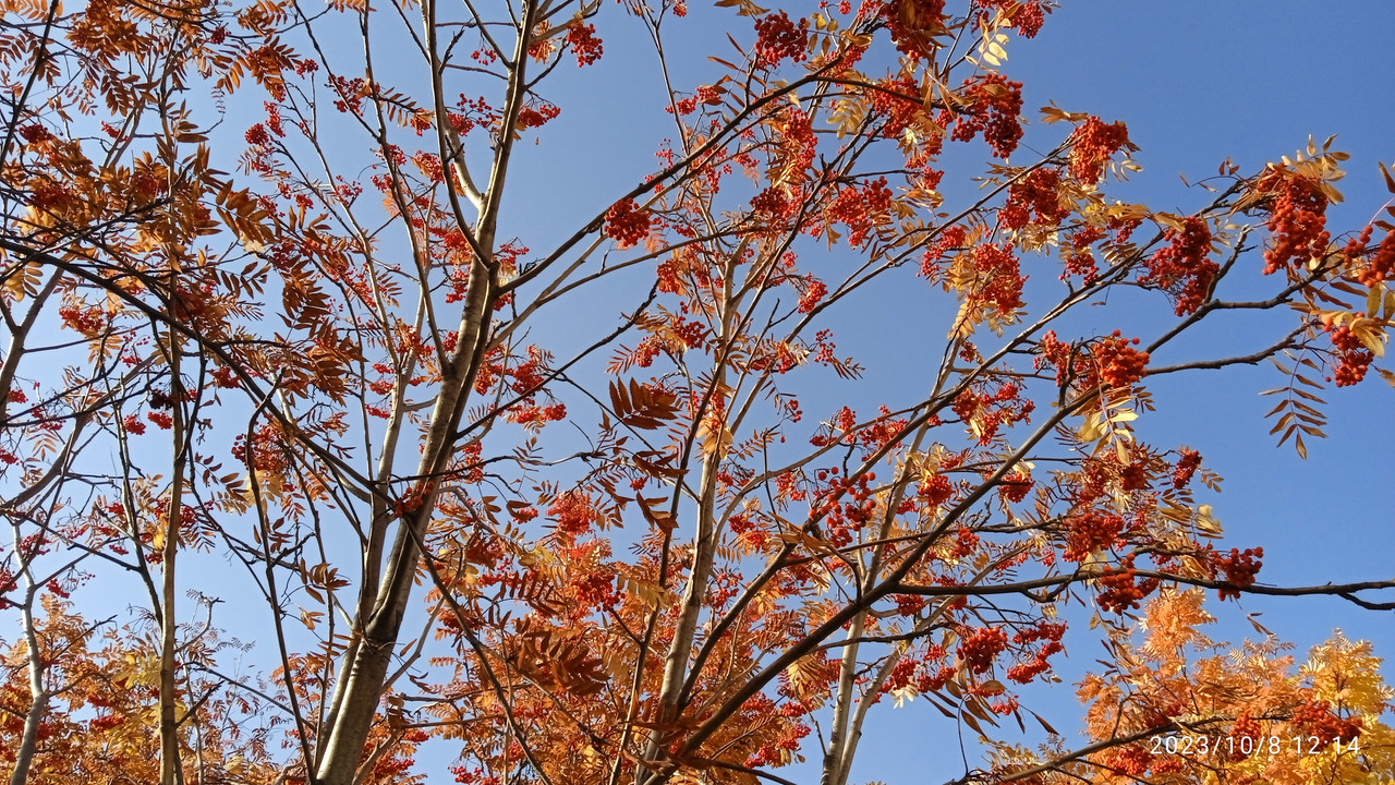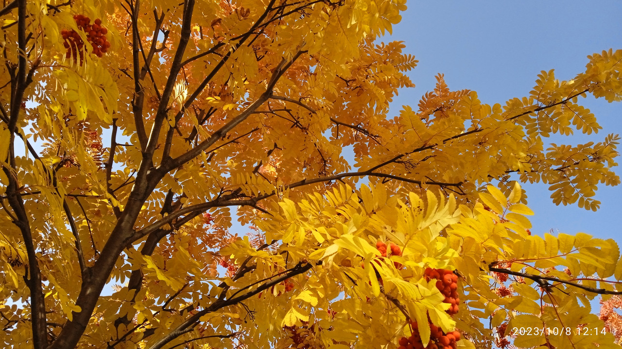 Через 2 часа подул сильный ветер,и к утру все листья облетели,кроме зелёной рябинки.