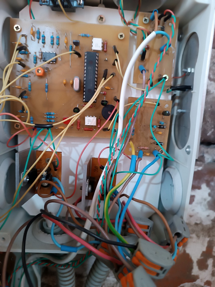 По факту что мы имеем. Часовое помещение. Не отапливаемое. Летом жуткая жара, а зимой мороз. По факту в каждом блоке управление установлен буферный аккумулятор. Который благополучно сдох. Решение проблемы: перенос блоков управления в отапливаемое помещение. Из четырех, два часовых механизма работают. У одного неисправного часового механизма, в результате разгерметизации, залита плата датчика оборотов и электродвигатель вышел из строя. У другого неисправного часового механизма, в блоке управление вышел из строя КТ825Г. |