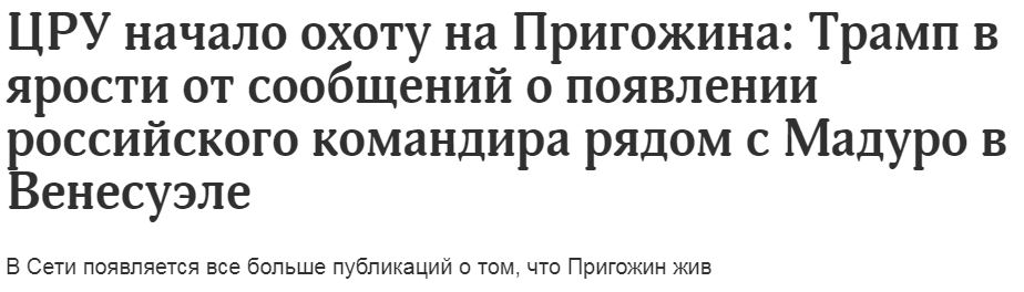 Кстати, первыми о том, что Пригожин жив и находится в Венесуэле, сообщили британцы. Впрочем, источники издания Daily Mail были весьма сомнительными. Тем не менее, Уилл Стюарт писал, что глава ЧВК «Вагнер» Евгений Пригожин «жив и здоров и находится на Карибском острове в Венесуэле». А свою смерть в авиакатастрофе он инсценировал. |