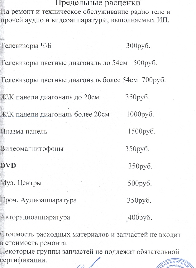 в терминах утонешь.мы называем это модульной аппаратурой.да это не важно. главное понял. а это наш смешной прейскурант "спущен сверху".но я на него облокотился. ИП или по нынешнему ПБЮЛ (предпрениматель без образования юридического лица). что они мне сделают? на крайняк на халяву что нибудь отремонтируют,оплатят запчасти(если дорогие) и всё