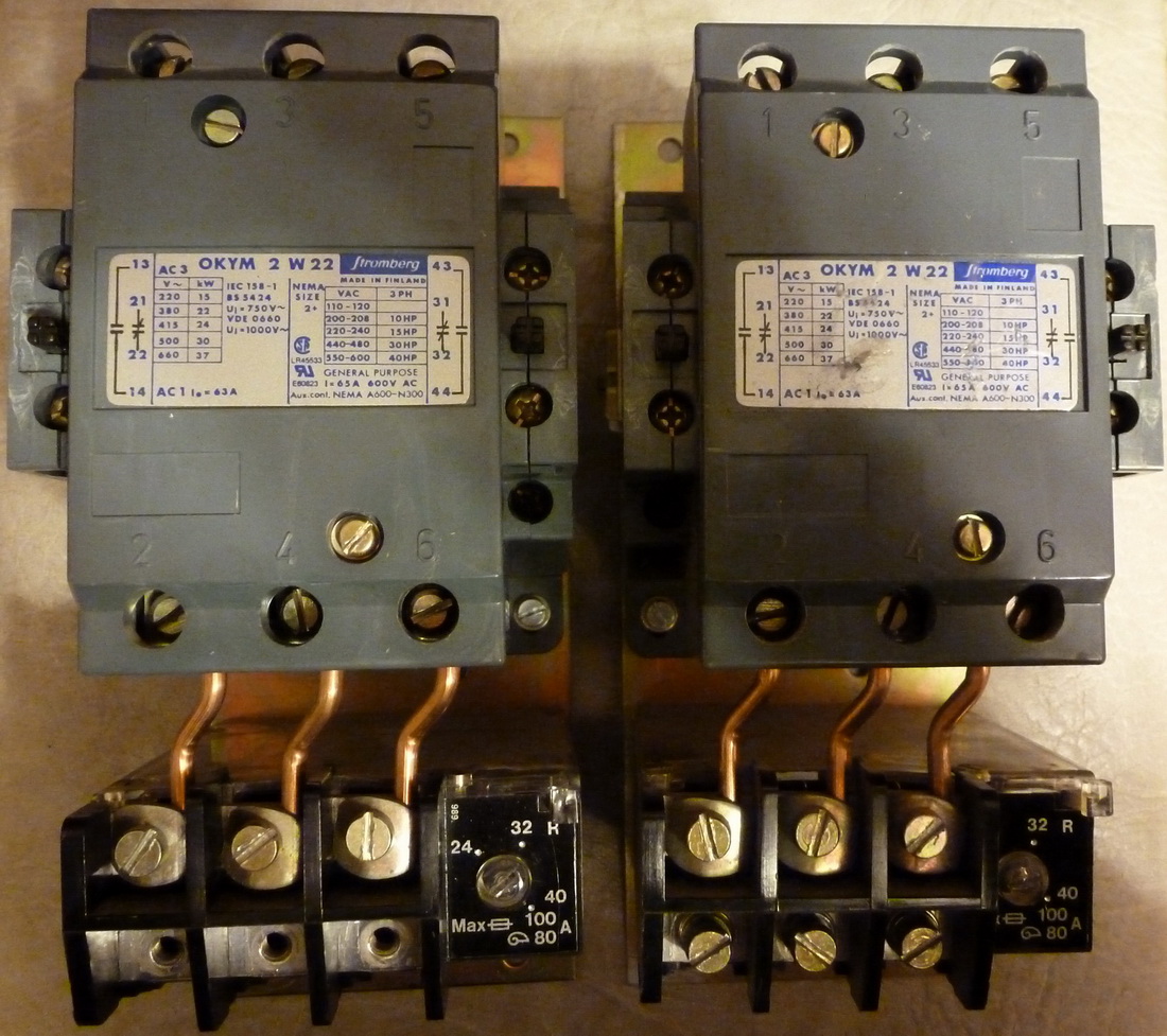 Продам два рабочих магнитных пускателя Stromberg OKYM 2W22. 220V, с тепловой защитой на 100А.