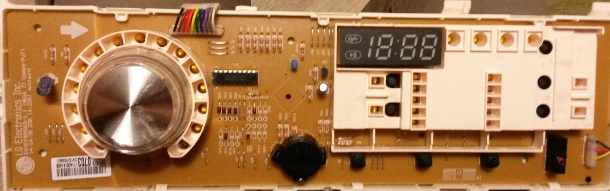 Нет панели управления. Остался с нее дисплей. Все точки горят.