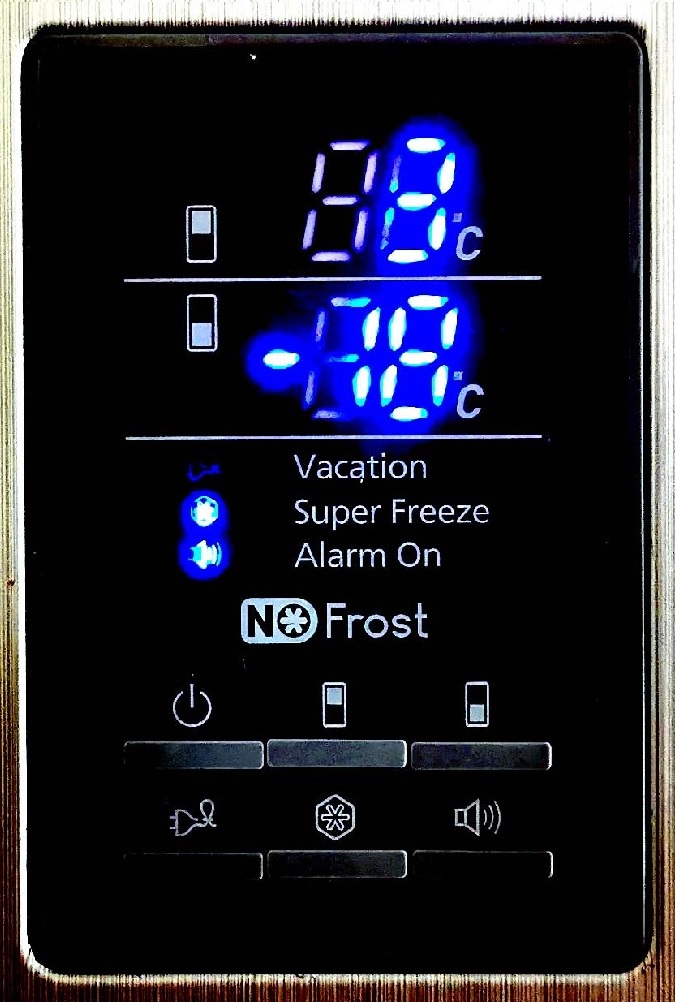 Получил на восьмой день, поставил на холодильник на девятый день. Под рукой не было ни отсоса, ни экрана от антенного кабеля. Был только 25 ватный паяльник, олово и канифоль. Нагревал каждую ножку и мощным продувом "сдувал" припой со стороны дорожек. Потом поддел рукой в небольшой натяг плату и провёл жалом по ножкам - одна сторона родного индикатора освободилась. Со второй стороной поступил так же. Впаял переходники. Вставил новую плату индикации. Не совсем понравилось свечение - видны были яркие центры светодиодов. Для более сильного рассеивания индикации в дополнение к фильтру, который прислали в комплекте с дисплеем ещё проложил вчетверо сложенный матово-белый пакет (в народе называемый "майка"), Эффект на лицо, брат доволен, а это и было целью!