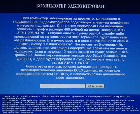 Это вирусы, которые, заразив компьютер, блокируют Windows и предлагают отправить sms на короткий номер, чтобы получить код для разблокировки, после чего со счета абонента снимается 300-600 руб. Потери пользователей «Доктор веб» оценивает в сотни миллионов рублей.