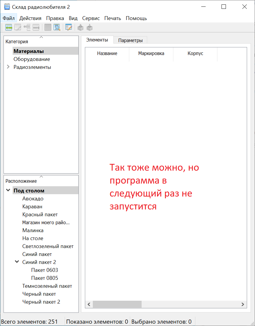 Помогите пожалуйста с программой "Склад радиолюбителя" версия 2.4.0.479