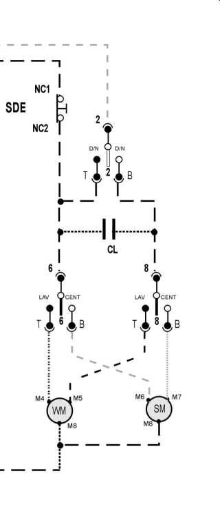 В стиралке с таким движком имеется 2 комплекта обмоток-одна на стирку,вторая на отжим...Фазосдвигающий конденсатор один для обоих секций.  |