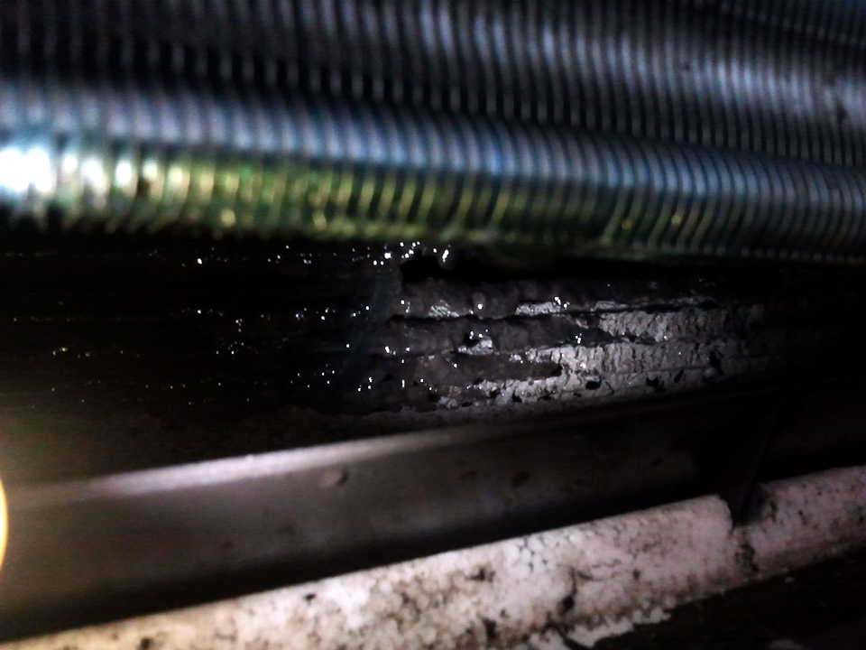 На сколько возможно опускаю поддон, поднимаю радиатор и о боже, столько грязи я никогда не видал! Белка была практически вся в хлопьях! Попробовал чистить механически кисточкой от веника. Потом взял прыскалку с водой и благополучно затратив 5 литров воды все отмыл.