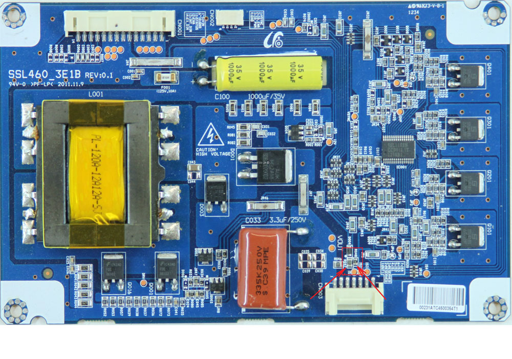 Всем доброго времени суток. Просьба, если у кого есть в наличии Led драйвер ssl460_3e1b rev 0.1 посмотреть номиналы резисторов R047 и R048 на плате данного драйвера. Стоят возле разъёма CN003. Фото прилагается ( нашёл на просторах интернета и обозначил нужные сопротивления ).