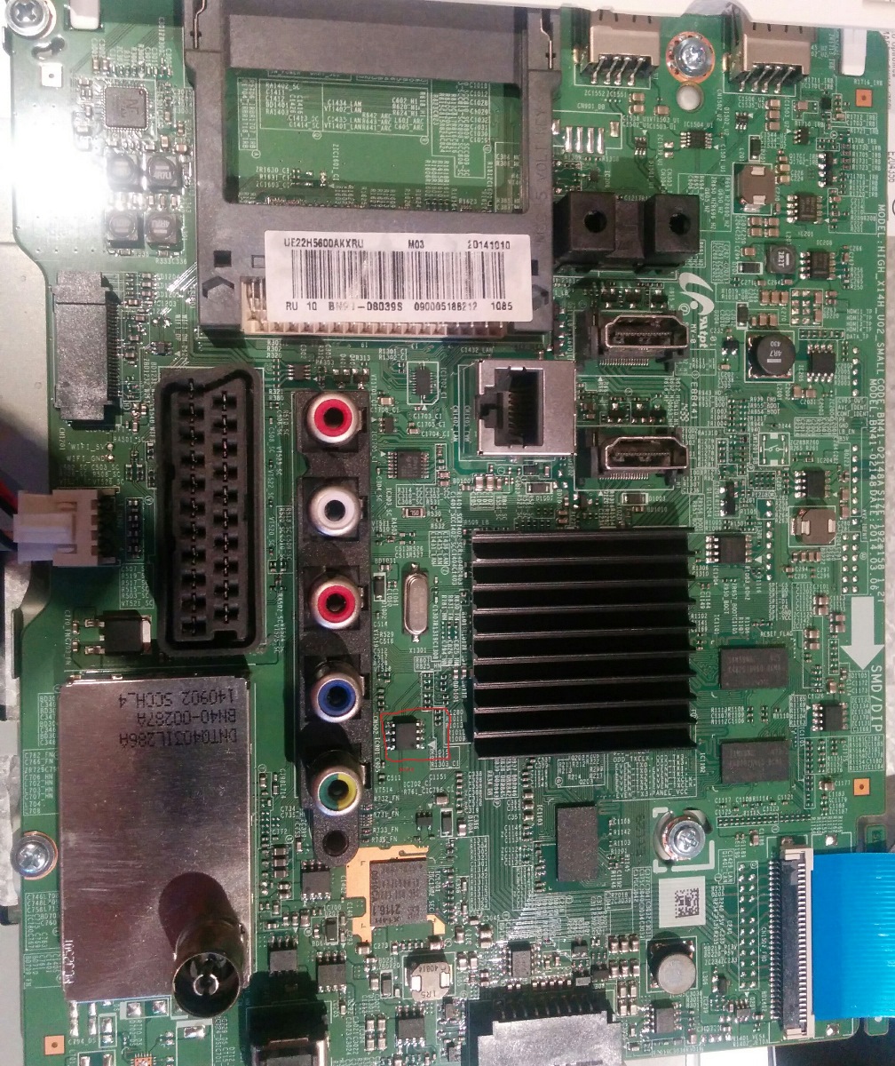 Всем доброго времени суток. Принесли телек с такой проблемой.При включении загорается smart tv дальше ничего не происходит, выключение возможно только при откл. из розетки. На одном из форумов нарыл, то что надо шить 24с512. Вообщем вопрос следующий,правдива ли эта информация и если да, то где найти прошивку. За ранее всем спасибо за помощь. Фото прилагаю.