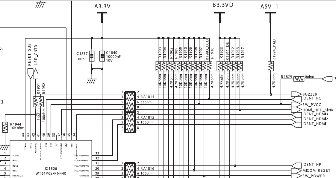 При проверке в дежурном режиме выявил, что на выводе 29 микросхемы IC1806 WT61P6S-RN440 импульсы от 0 до 3В. От