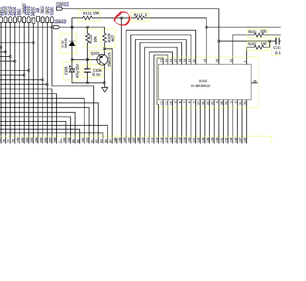 на схеме красным выделено, когда пропадает изображение напряжение падает всего на 0.02 с 3.30, и слышно что по схеме где то что то щелкает как реле