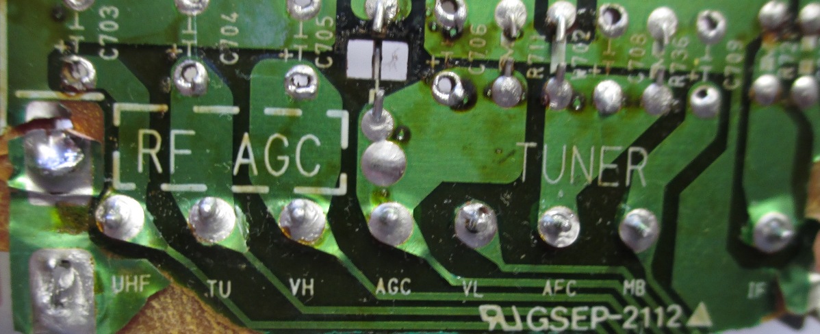| Выдранное гнездо успешно припаевается на место,хорошо прогретым паяльником, обычно ватт на 40. Из-за этого менять целиком тюнер не стоит. |