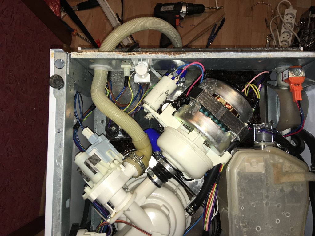 Boro, А зачем машинку на левый бок ложить? У тебя не было еще так что когда снимаешь патрубки водичка из патрубка на двигатель или на плату попадает? Лучше уж отодвинуть машинку от стенки см на 60 и опрокинуть на стену.